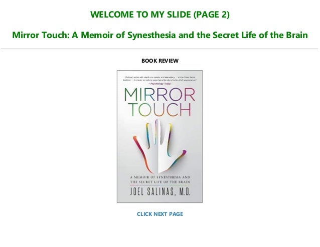 Mirror touch synesthetes observing someone touched the left side of their cheek, perceive it as a touch on their own left cheek (anatomical), or on their right cheek (mirrored). On the face of it, mirror touch synesthesia can be associated with deep empathy. The irony is that these mirrored feelings go beyond the emotional feelings and are physically associated with synesthete. Joel salinas is a harvard brain doctor with extraordinary gifts that provide him unique access to his patients and enable him to experience life in a remarkable way. I thoroughly enjoyed reading dr.