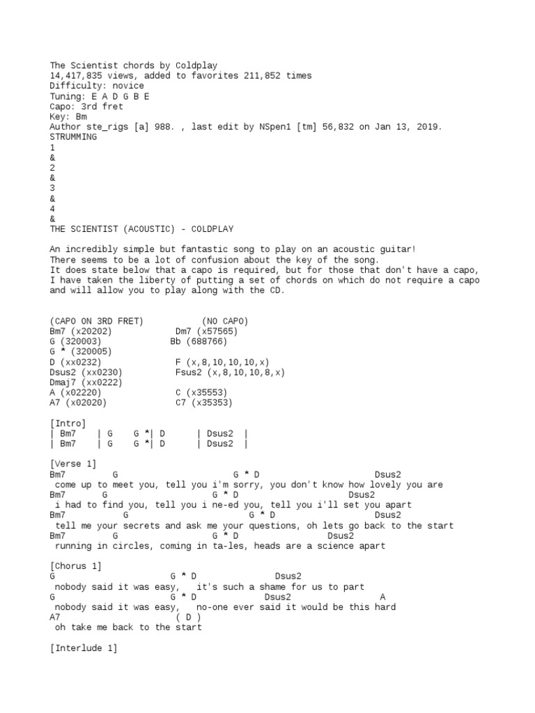 ÊÊÊɨcÊÊ ÊÉɨ ÊÉɨ Guitar Chords And Lyrics Coldplay Lyrics Piano Songs Chords from i.pinimg.com When you open the zip file you'll find one or more lesson videos, a performance play thru video of the song, and pdf files of the tabs and chords/lyrics. I recorded this with my strat and my hx effects pedal. Mar 20, 2020 · 29. We have an official the scientist tab made by ug professional guitarists. Apr 16, 2019 · guitar com. The scientist chords by coldplay. Up to 24 fretboards per document, individually resizable; Once you save them to your pc they're yours forever, and if you ever lose them just email me and i'll send a replacement link.